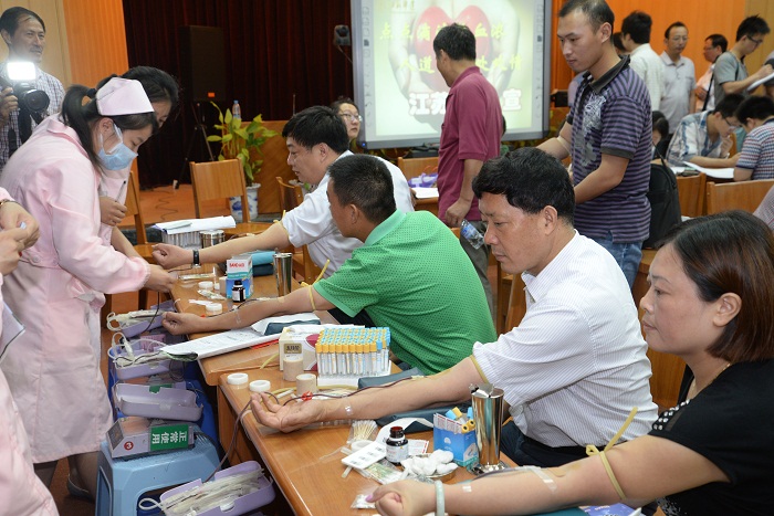 7月29日上午,公司再次組織系統(tǒng)干部職工在公司一樓會議室參加無償獻(xiàn)血活動。此次活動得到了系統(tǒng)各單位大力支持,建控公司領(lǐng)導(dǎo)吳士茂、錢啟明帶頭參加,系統(tǒng)共有164名干部職工參加了無償獻(xiàn)血活動。值得一提的是,江蘇華建員工陳剛,已連續(xù)7年捐獻(xiàn)血小板,每年捐獻(xiàn)6次,總獻(xiàn)血量已超過一萬毫升,為系統(tǒng)員工樹立了榜樣。
