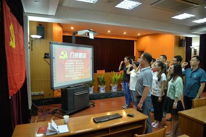 此次活動共三個環節,首先是在奏響莊嚴的國際歌后,新黨員舉行入黨宣誓,在領誓人的帶領下,11名新黨員面向黨旗,舉右手握拳,鄭重認真宣讀了入黨誓詞。接著,與會全體人員對中共十八大通過的新黨章進行了集體學習。黨委委員程杰參加活動,黨委委員、紀委書記錢啟明最后講話,他以上黨課形式進行了深入的廉政警示教育,教育大家:要加強學習,牢固黨性,做到“不想腐”;強化制度建設和監督管理,做到“不能腐”;堅持有腐必懲,有貪必肅,做到“不敢腐”。
